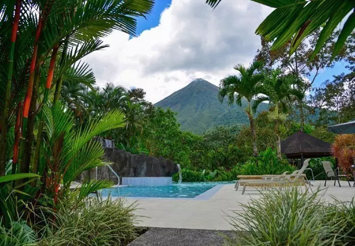 There is also a swimming pool filled with natural spring water from the volcano. There are 54 rooms, each with a small veranda where you can enjoy the view of the volcanoes and the hacienda. All rooms are equipped with air conditioning, safe and TV.