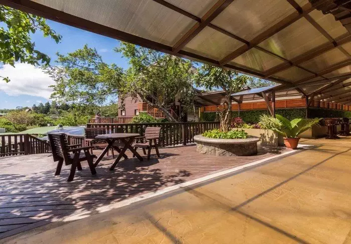 The resort has its own restaurant, which serves a combination of local and international dishes made from ingredients largely grown in its own kitchen garden.