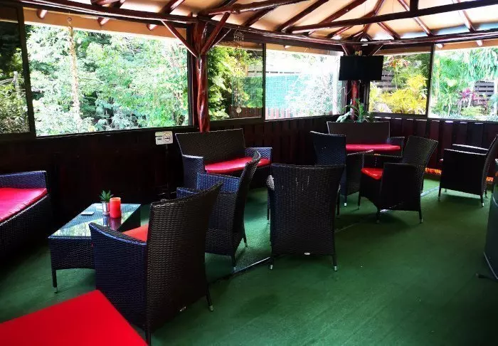The Otocuma restaurant serves delicious local and international dishes made from local produce. From here, you have a lovely view of the lush nature of the area, and you may even be lucky enough to spot one of the many hummingbirds.