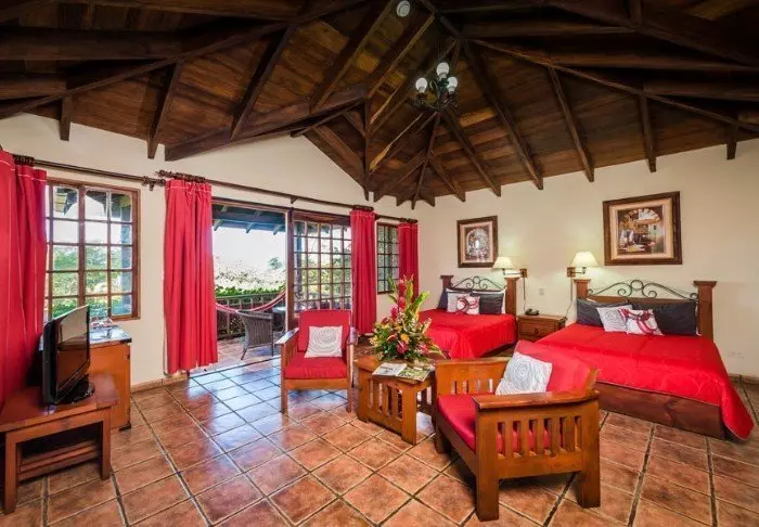 The hotel has 30 spacious rooms, all with cable TV, a telephone, a safe, Wi-Fi and a coffee maker with locally produced coffee from Monteverde.