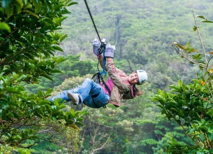 You whizz over the cloud forest’s ravines and lush vegetation and perhaps even through the clouds along cables, which are firmly clamped to the platforms in the tree tops. You reach speeds of up to 70 km/h on the eight different cables, the longest of which is 750 metres long and the highest is 100 metres above the ground.