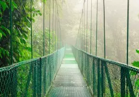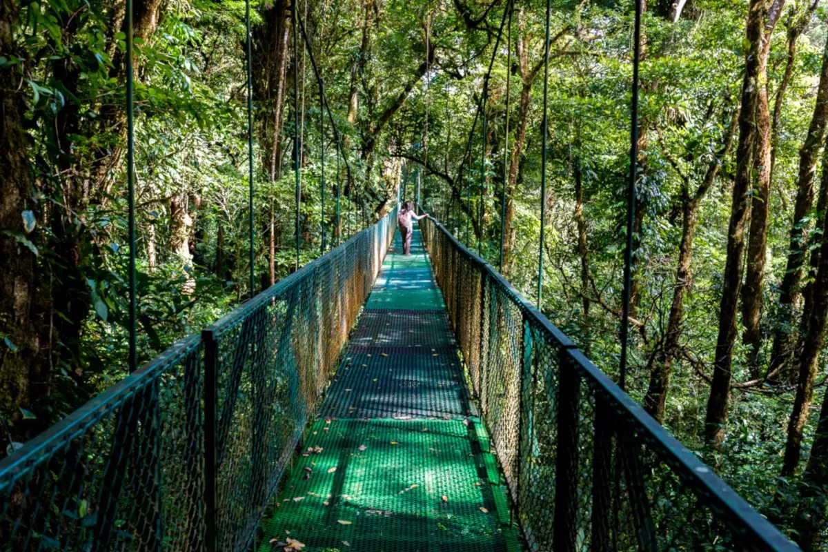 In Monteverde, you have the opportunity to experience the mysterious cloud forest from above on a thrilling walk along hanging bridges extending between the treetops.