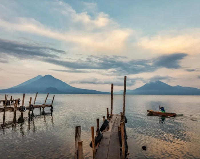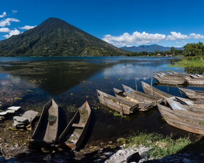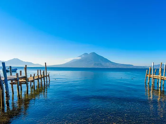 From here, you’ll travel up into the highlands to the picturesque town of Panajachel, where you’ll set sail on the magical Lake Atitlán, surrounded by volcanoes and traditional Maya villages.