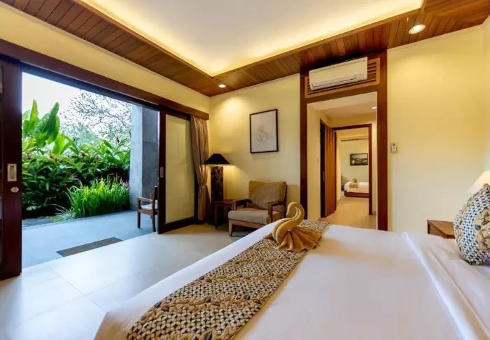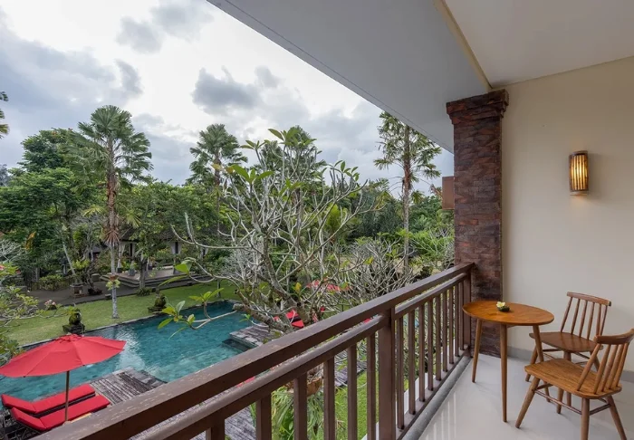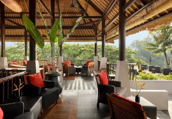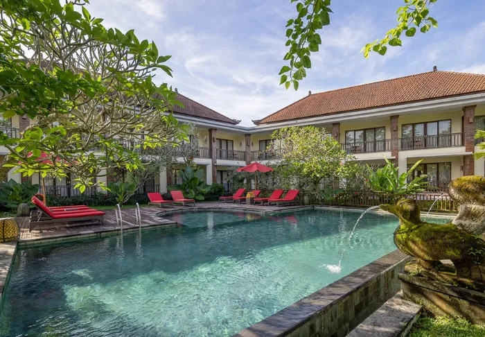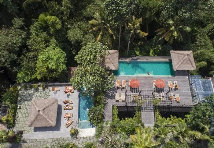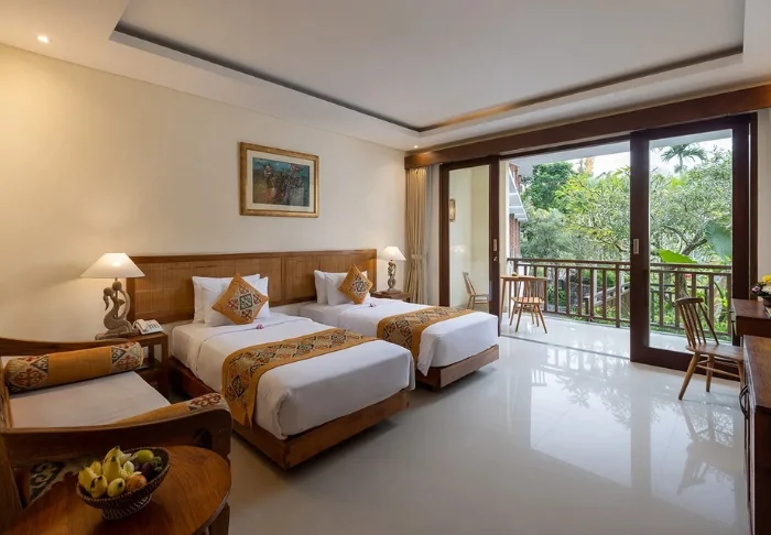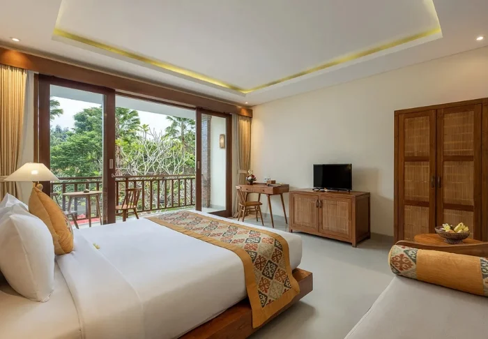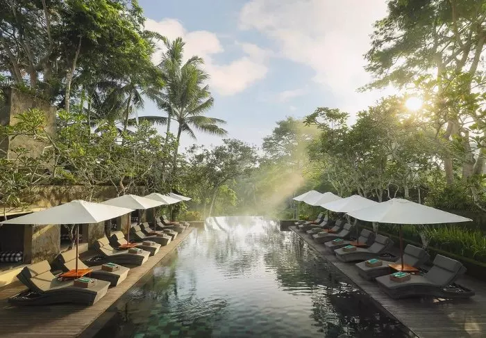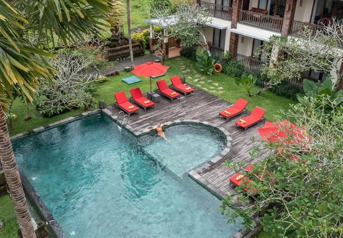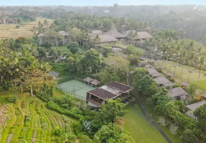 The resort has its own free shuttle bus to Ubud town centre, a 5–10-minute drive away.