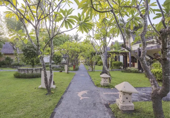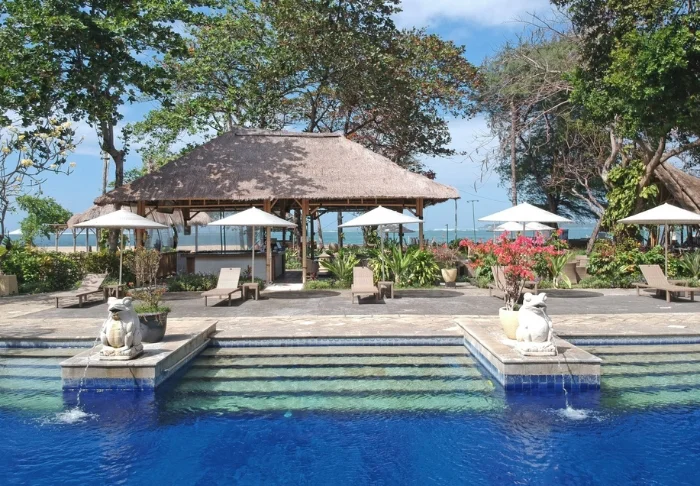 Mercure Bali Sanur Resort is set right on one of Sanur’s finest beaches – a peaceful, wide stretch of sand with shallow waters and the welcome shade of palm trees. The resort is spread out over five hectares of lush tropical gardens filled with swaying palms and meandering pathways weaving between Balinese buildings, topped with traditional alang-alang roofs. You’ll enjoy a tranquil retreat here, while still being just a stroll from Sanur’s lively pedestrian street, lined with cosy cafés, shops, and restaurants.