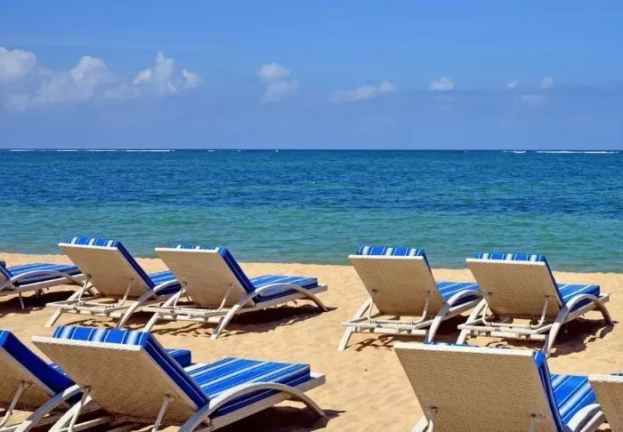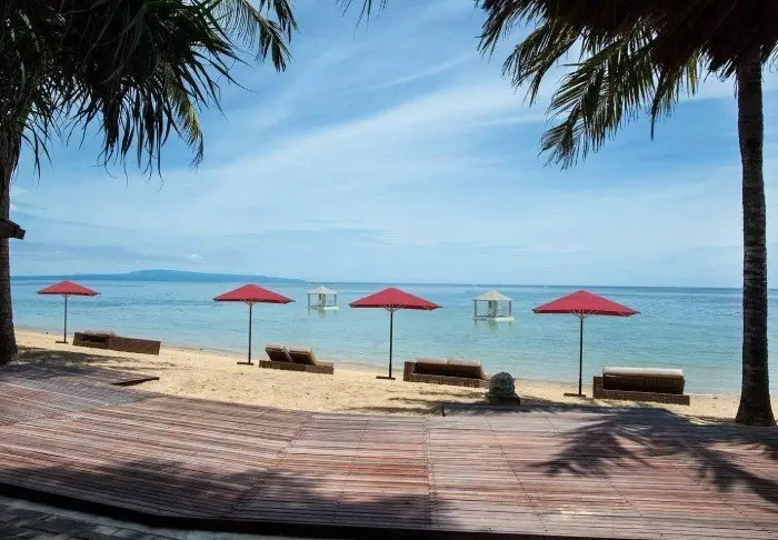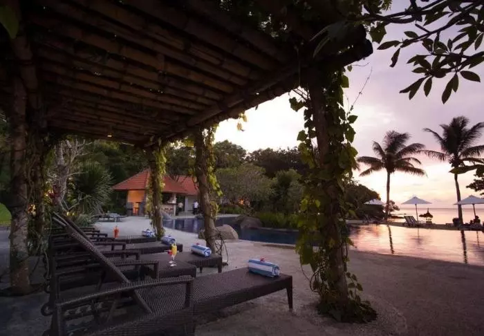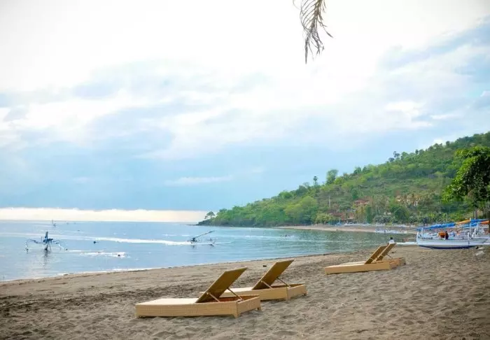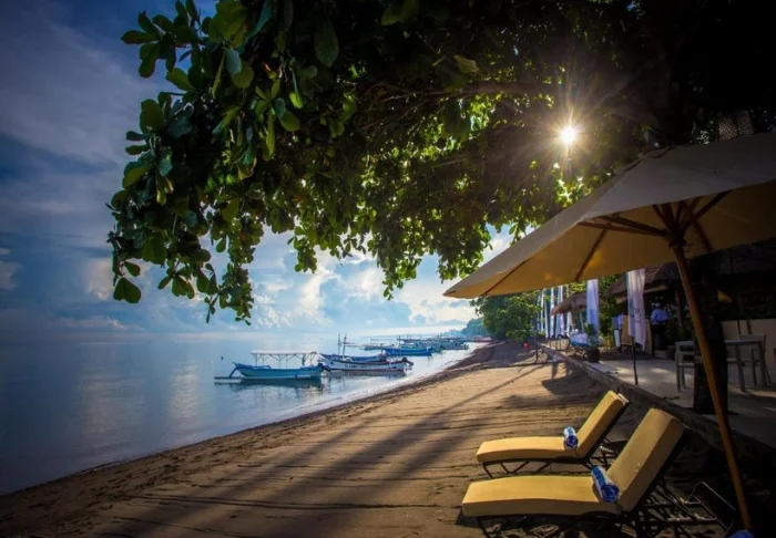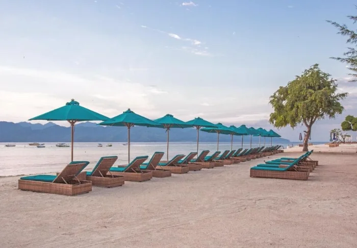 Sun loungers and parasols are available free of charge on the beach, allowing you to lie down and relax in the Indonesian heat.
