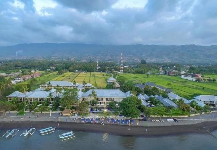 Set in the most beautiful of gardens, just a few minutes’ walk from the beach with the stunning black sand, is the charming 3-star Ketapang Indah Hotel. The pool is spacious, with plenty of room to sunbathe around the edge, and there is Wi-Fi throughout.