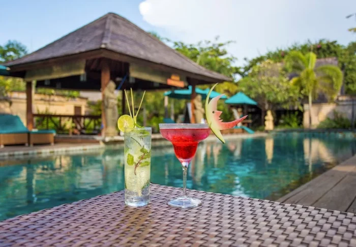 During the day, treat yourself to light snacks and cool drinks at Heliconia Restaurant, while the evening offers culinary experiences at The Beach Restaurant. Guests can enjoy Balinese specialties, freshly caught seafood and international cuisine under the open sky with views of the sea. Round off the evening at the Puri Bar, where you can enjoy a cold glass of wine or a colourful drink to the sound of relaxing music and spectacular glowing sunsets before a new day begins.