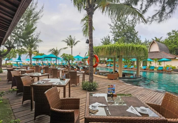 After a delightful day, you can cap off the evening with a refreshing drink at the bar as the sun gently sets over the Lombok Strait.