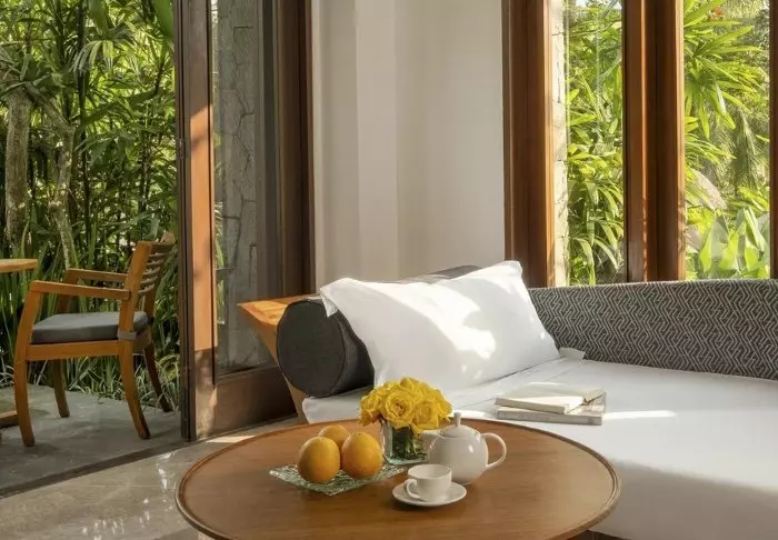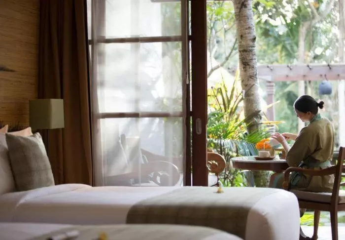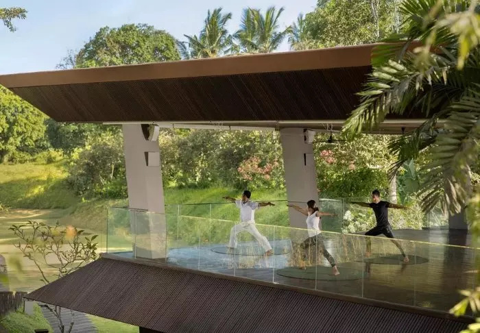 Kapha Spa offers various massage and beauty treatments to the sound of the river, and in the outdoor covered yoga pavilion, you can feel the tranquility and the gentle breeze. If you want to get your heart rate up, Wapa di Ume has its own gym equipped with treadmills, weights and various machines.