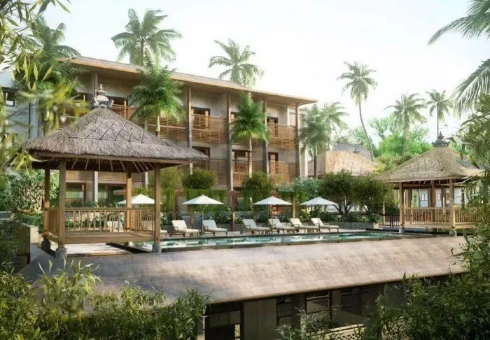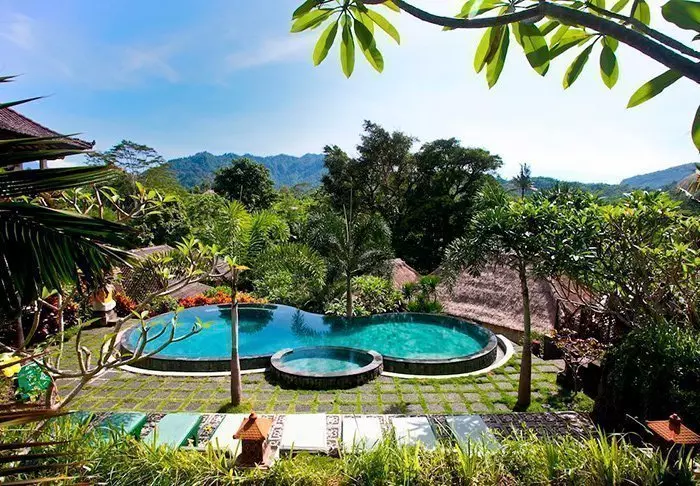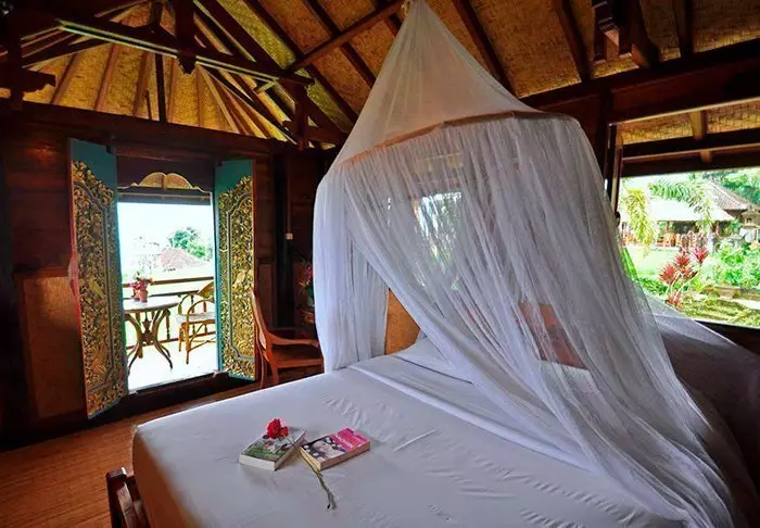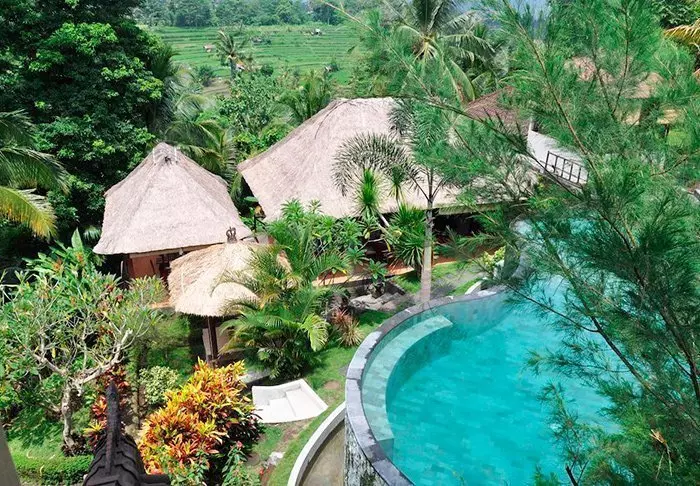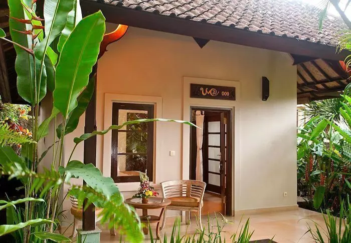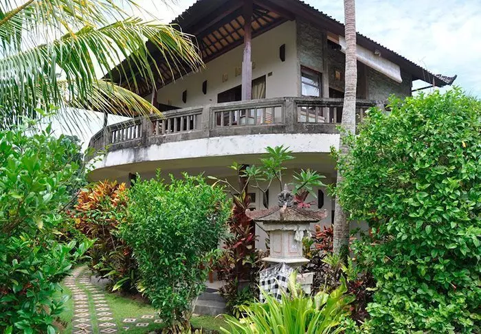 The small hotel is built in traditional Balinese style with natural materials that beautifully complement the green surroundings.