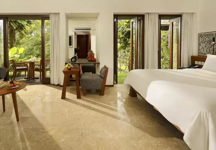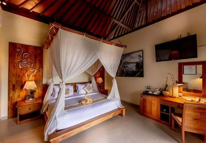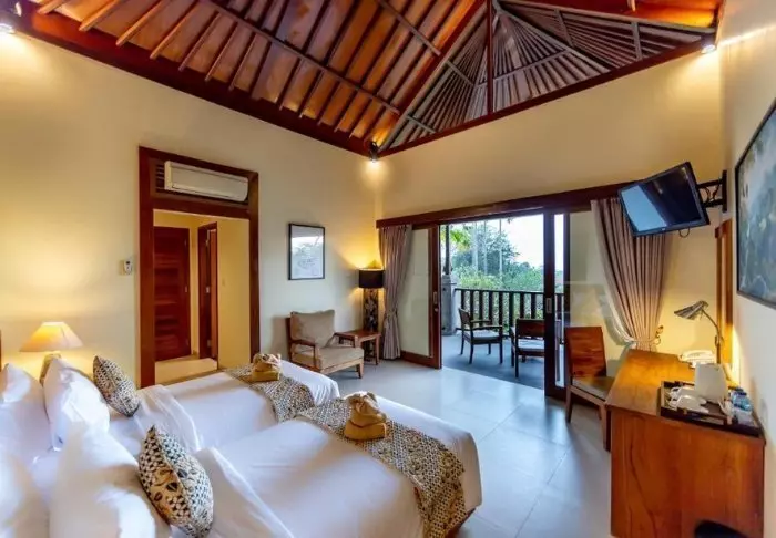 Anumana Village Ubud offers modern Balinese-style accommodation. The rooms are spacious (46 m²) and have their own balcony or terrace from which to enjoy the lush garden. The rooms have everything from free Wi-Fi and air conditioning to a minibar and tea/coffee making facilities. The bathrooms are fully kitted out with complimentary toiletries and a hair dryer. Free bottled water is provided daily.