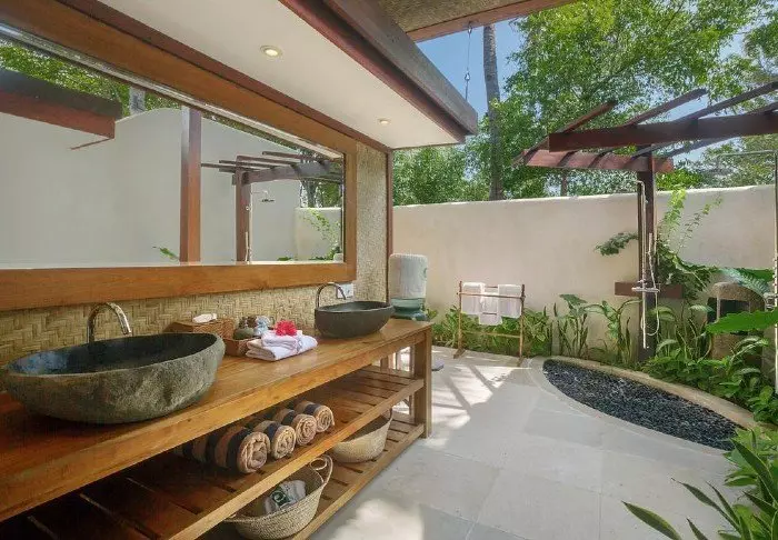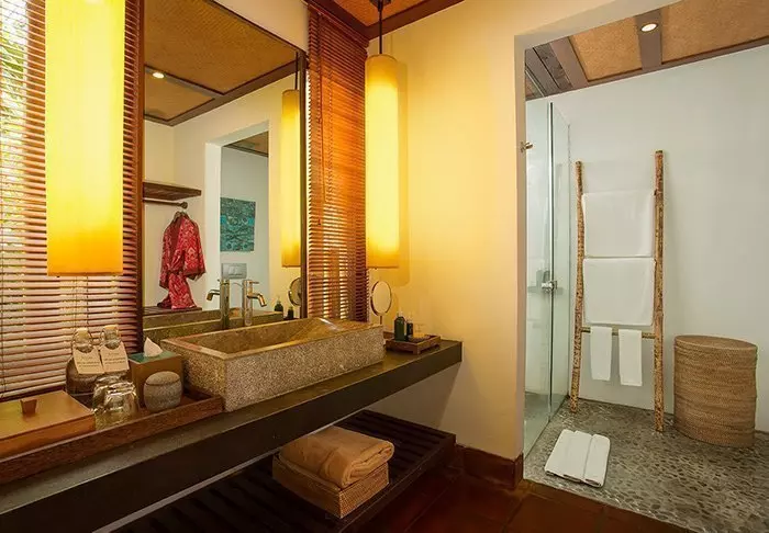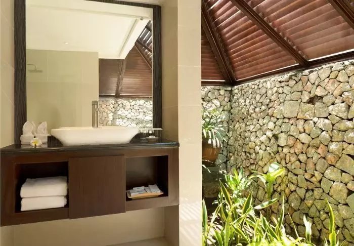 Batu Karang is built in rustic materials that harmonise nicely with the tropical surroundings. The style is modern and traditional, which is also reflected in the resort’s 37 villas and suites, which are attractively appointed with light walls, beautiful stone floors and nice dark wood furniture, which gives it a warm and cosy feel.