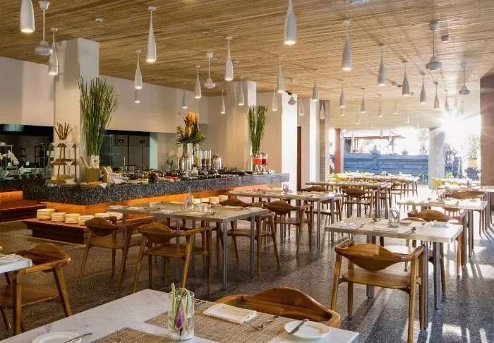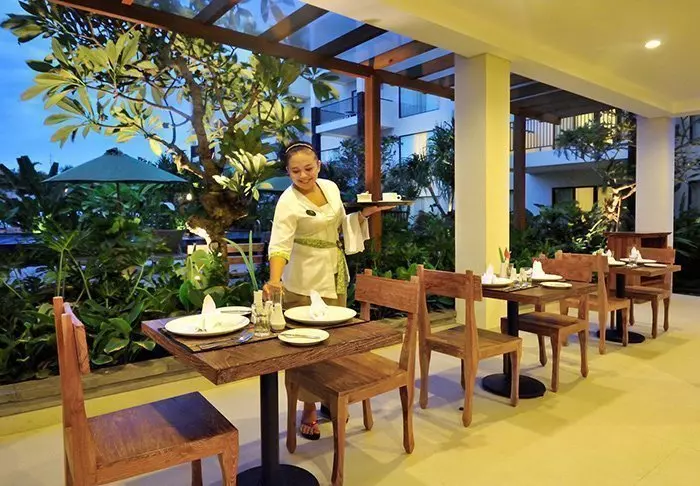 The resort’s cosy restaurant, Waroeng at Jeeva Klui, serves Indonesian, Asian and Western dishes, and offers free afternoon tea, snacks, fruit and coffee and tea. There is also a beautiful view of the swimming pool and the sea.