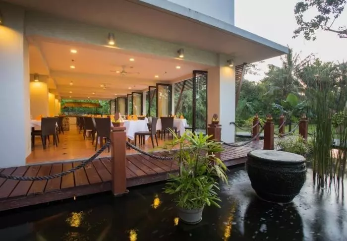 The hotel offers a smaller children’s pool and two swimming pools. One is surrounded by soaring palms and flowering shrubs, while the other lies in tranquil settings along the riverbank.
