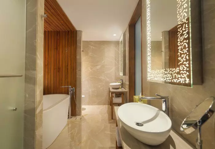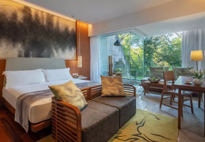 The rooms and villas are elegantly appointed with a mix of Balinese elements and modern facilities. They are also spacious, bright, and inviting. All room and villa types have a private balcony or terrace, ensuring you can sit back and enjoy the breathtaking views. All the necessary amenities are also provided to ensure you have a comfortable stay at Maya Ubud Resort. This includes air conditioning, a minibar, a coffee machine, tea making facilities, a safe, an iron and ironing board, a large flat screen TV, Wi-Fi access and a Bluetooth speaker. In the bathroom, there is an extensive selection of complimentary toiletries as well as a hair dryer, bathrobes, and slippers.
