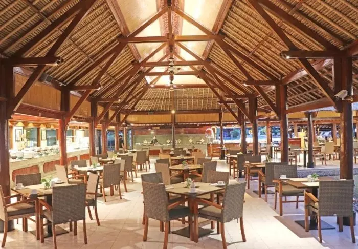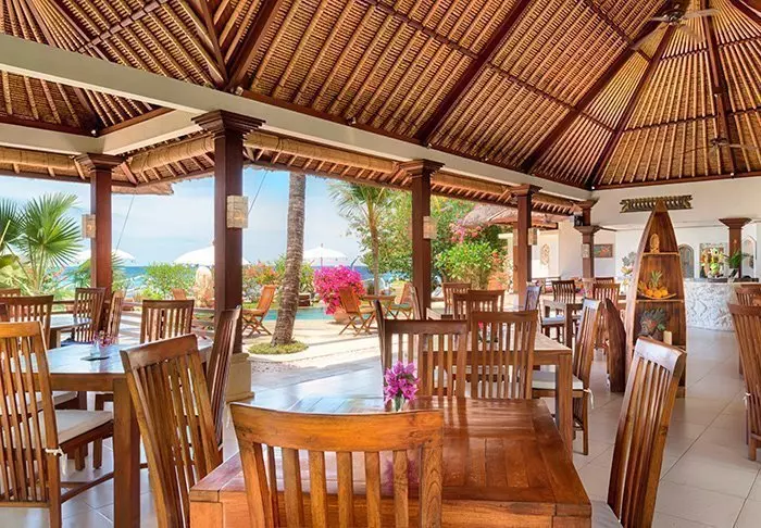 In the restaurant, a team of local chefs and kitchen staff from the nearby village are at the ready to serve Balinese and Indonesian dishes made from local produce and fresh fish provided by the local fishermen. There is also a pleasant sea breeze and a beautiful view of the beach.