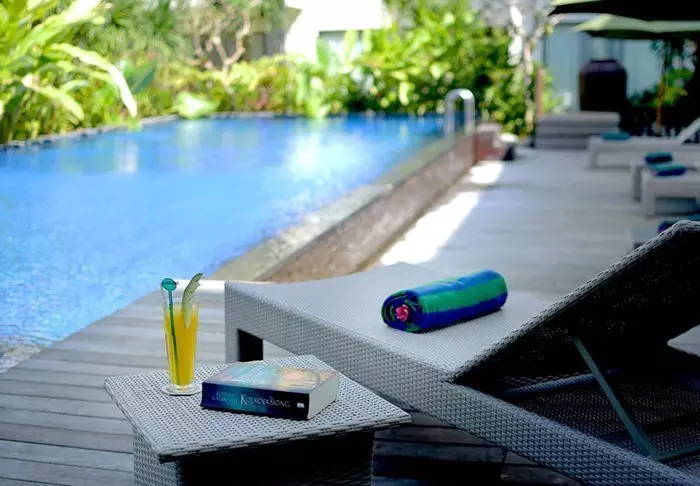 Jeeva Klui has a lovely infinity pool and a gym and day spa, offering various massages and beauty treatments. There is also a small shop and a library.