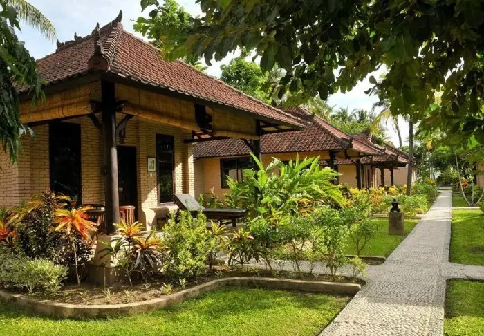 The hotel is cosy and has a lovely, relaxed atmosphere. It exudes authentic Indonesian style with traditional lumbung cottages and bungalows.