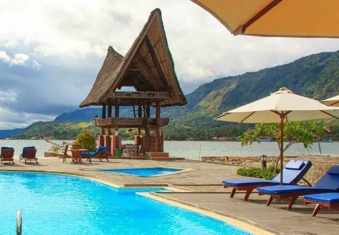 The island of Samosir in the middle of the crater lake Toba is the setting for this charming hotel, surrounded by paddy fields and plantations. The hotel is designed in natural, traditional style and enjoys a magnificent view out over the lake and the mountains.