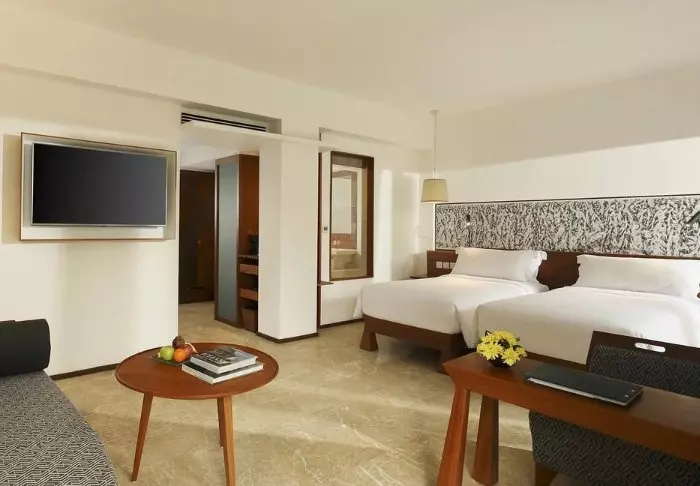 If you’re looking to indulge yourself during your stay, you can book a Balinese treatment at the hotel’s Sanjivani Spa, which offers massages, facials, and wellness experiences in tranquil surroundings. You can also start your morning with a yoga session or challenge your travelling companion to a game on the hotel’s own tennis court. Volleyball, table tennis, and bicycle hires are also available if you fancy exploring the local area.
