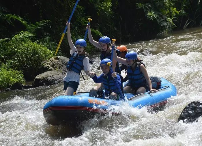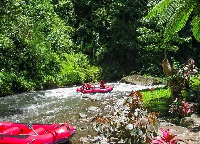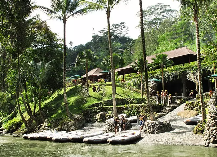 A steep path and stairs lead you down to the Ayung River, where you will be instructed on how to raft and how to behave on the boat, which seats six people plus a certified guide. There is a waterproof bag on board where you can store your mobile phone, money, etc.