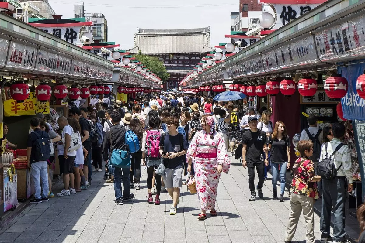 Asakusa is also where you can find the oldest temple in Japan, Sensoji Temple. Sensoji is the oldest temple in Tokyo, and for many Japanese people, coming here to light incense is of profound importance. Nakamise street leads up to Sensoji Temple. Nakamise consists of souvenir shops and food stalls, and the street offers great opportunities to buy traditional souvenirs.
