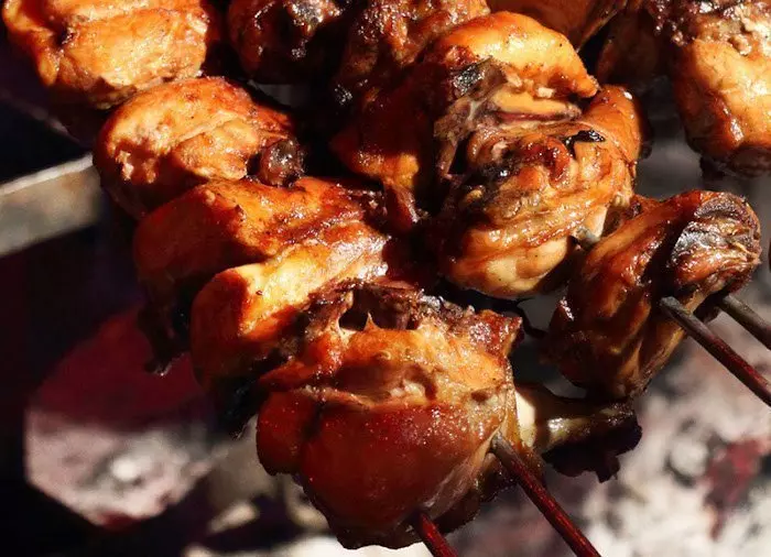 The meat is prepared in true Masai style over barbecue charcoal – and the concept is “all you can eat” until you give in and lower the small flag you have on your table.