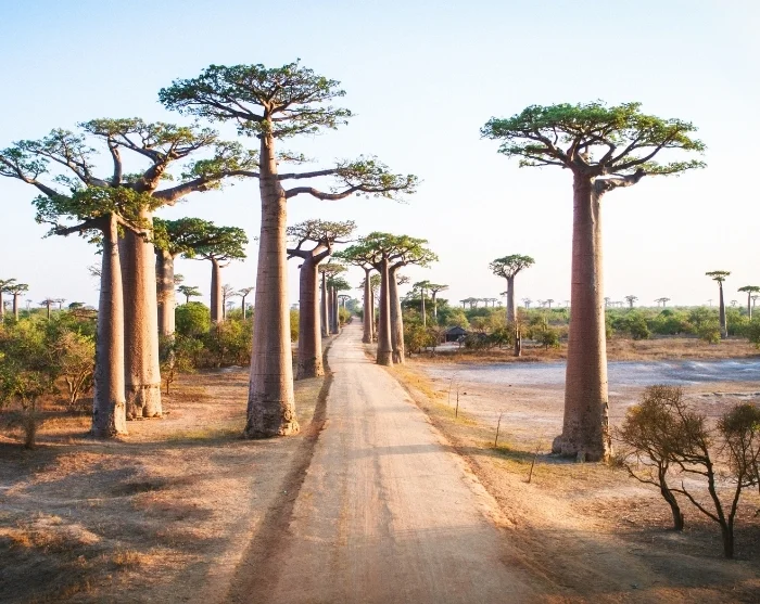 The real highlight of the area is the Avenue of the Baobabs. Located about 20 km outside Morondava, this dirt road is lined with more than 20 ancient baobab trees—some nearly 800 years old. Scattered along the gravel track heading north, these trees stand like surreal natural sculptures, especially with their often bare branches. Baobab trees only sprout leaves during the rainy season; as soon as the dry season arrives, they shed them to preserve water—making their sculptural appearance even more striking.
