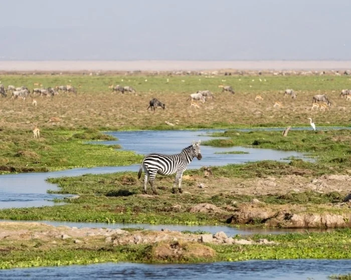 Of course, there’s the spectacular view of the majestic Mount Kilimanjaro, but even on days when the mountain is hidden behind clouds, Amboseli has its own unique, captivating charm. The landscape is a striking mix of contrasts – from dusty plains to lush, marshy patches teeming with birds and other wildlife. The park is characterised by relatively low vegetation, making wildlife spotting that much easier. The scenery in the park shifts dramatically with the seasons. There are lakes here that dry up completely during the dry season, only to fill again when the rains return.