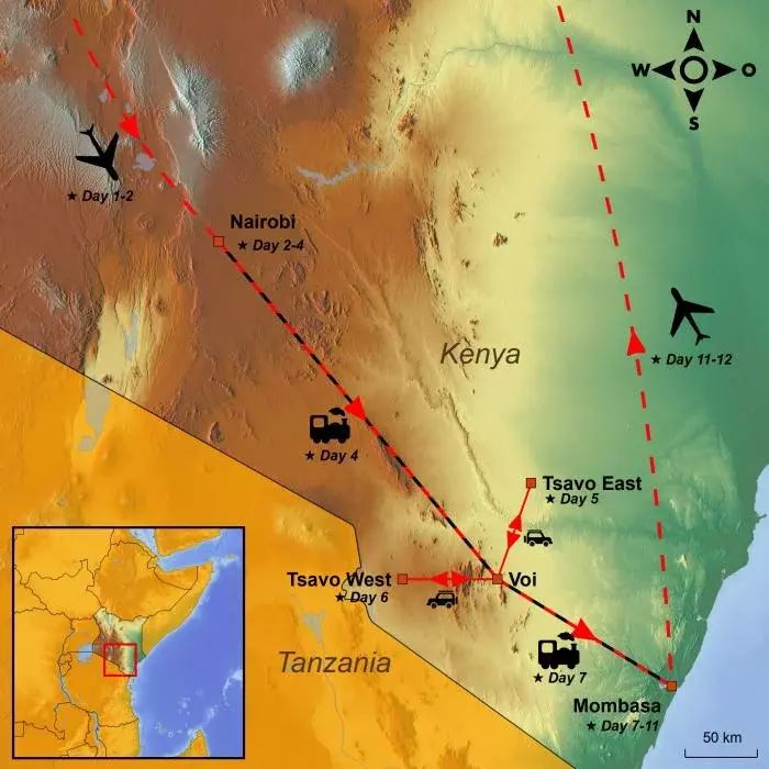 It’s time to bid farewell to Tsavo’s red elephants and say hello to the white sandy beaches along the coast.
