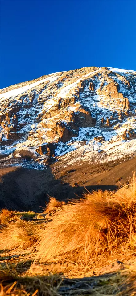 Today’s stage takes you through the last stretch of woodland, and the vast expanse of heath soon opens up before you. As you walk, you can admire the ragged peaks of Mawenzi that rise up towards the African sky. A lot of people experience the first signs of altitude sickness at these heights, so please watch out for the slightest indication of illness and inform your guide without delay. When you reach Horombo Huts, there will be time to unpack and enjoy the view of Kibo before dinner is served.