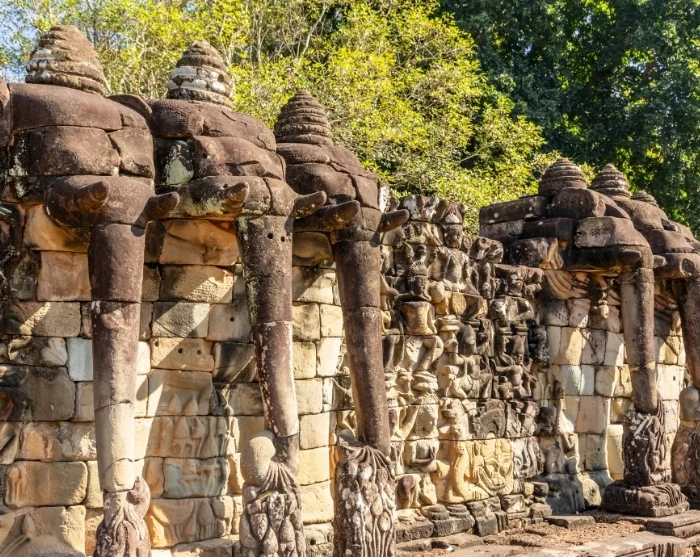 Discover the Elephant Terrace, where a long wall is adorned with intricately carved elephant heads. From here, King Jayavarman could once observe his army. Nearby, you’ll find the Terrace of the Leper King, featuring a statue of Yama, the Hindu god of death.