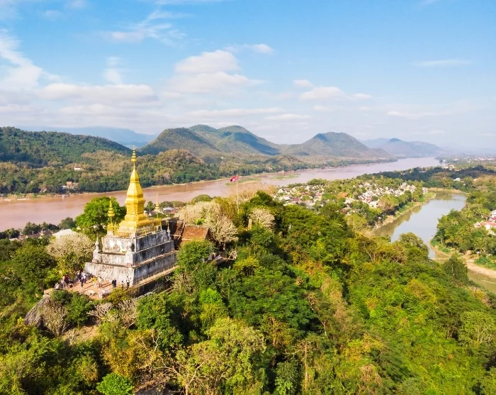 The old town is set on a peninsula where the Mekong and Nam Khan rivers meet. Surrounding Luang Prabang is a breathtaking natural landscape, with forested mountains, cascading waterfalls, and hidden caves. Vibrant greens weave between golden temples and peaceful, picturesque streets.