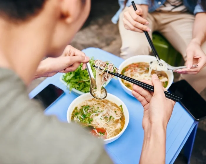 For lunch, dive into Hanoi’s famous street food scene. Try a steaming bowl of pho, savour the aroma of grilled bun cha, or grab a crispy banh mi to enjoy on the go.