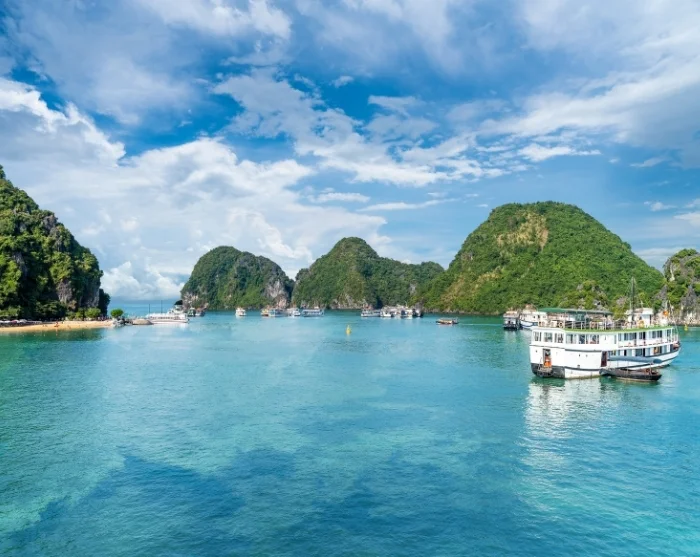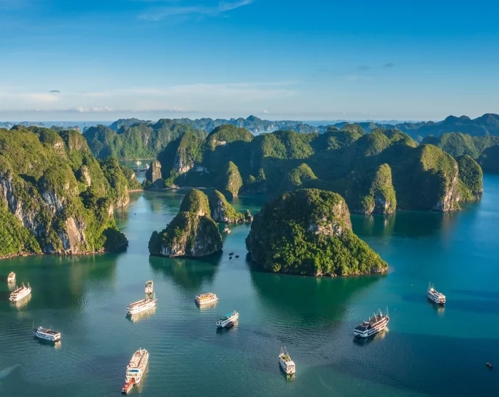 From Hanoi, you’ll travel to Ha Long Bay, where a mini cruise awaits. Marvel at the dramatic limestone cliffs rising from the sea, and visit caves, pearl farms, and picturesque viewpoints.