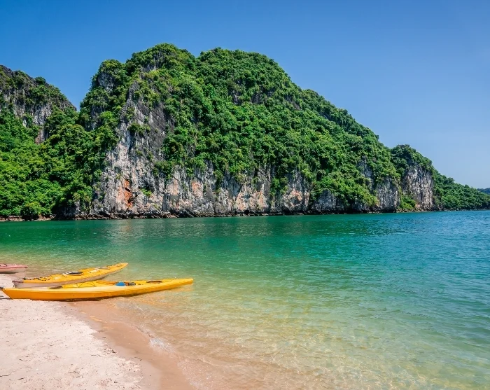 In the afternoon, you can enjoy a kayaking trip around the beautiful island of Cap La, a picturesque area famed for its majestic limestone formations and crystal-clear coves. The water is usually calm and shallow, making it safe and enjoyable for both beginners and experienced kayakers to paddle amongst the rocks and tranquil lagoons.