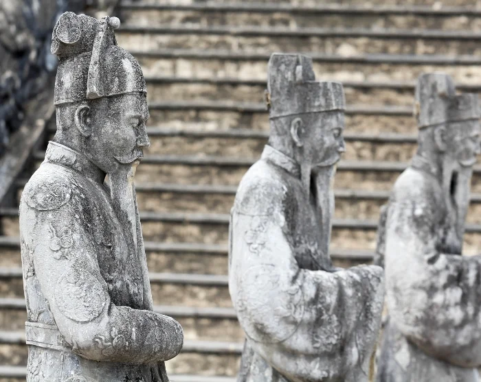 Next, you’ll visit the tomb of Emperor Khai Dinh, which stands out significantly from the other imperial tombs in the area. Built in the early 1900s, the complex blends traditional Vietnamese features with European baroque and gothic styles. The result is an architectural masterpiece, both grand and intricately detailed, serving as a tribute to the late emperor and a reflection of his fascination with Western art and culture.