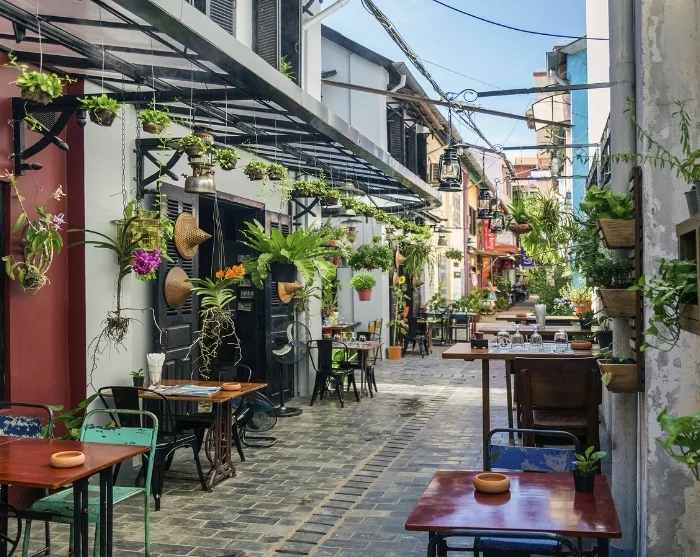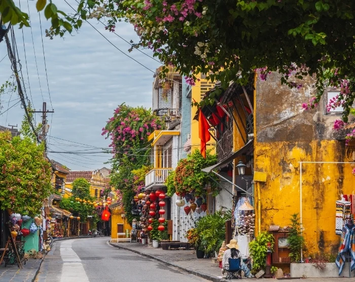Moving away from the river, you’ll discover a maze of charming little streets. Here, you’ll be greeted by a vibrant blend of Japanese timber houses, Chinese assembly halls, elegant French colonial buildings, and the iconic merchant houses. Colourful lanterns dangle like garlands above the streets, casting a magical glow—especially as night falls. Shops, street food stalls, cosy cafés, and petite restaurants are strung together like pearls, inviting you to unwind and explore at your own pace.