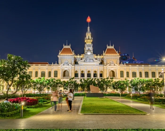 At dusk, take a stroll down Nguyen Hue promenade, which is lined with flowers, fountains, and atmospheric architecture. Here, you’ll experience the unique city life as locals gather with street performers, dancers, and young families, creating a charming and lively mix. The relaxed and vibrant atmosphere reaches its height around the illuminated city hall.