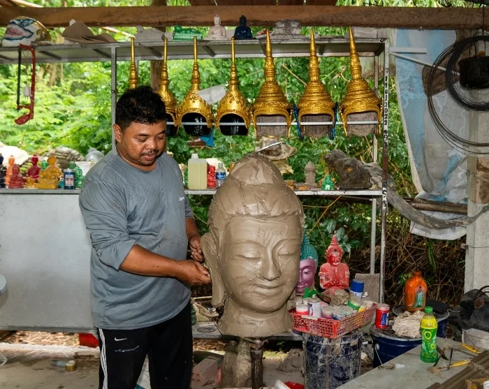 The tour continues with a visit to a talented Khmer artist who creates statues and masks for the local pagodas.