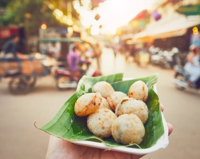 Siem Reap is a laid-back, charming town that invites you to enjoy a leisurely stroll through the French Quarter or beneath the shady trees along the Siem Reap River. Here, you’ll discover small shops, cosy cafés, and bustling markets. In the evening, you can wander through the lively night market, where the aroma of tempting Khmer specialities is simply irresistible. Try some delicious grilled meat or a spicy noodle dish, pulling up a stool among the locals as they enjoy a snack. And if you’re feeling adventurous, why not sample a grilled cricket on a skewer?