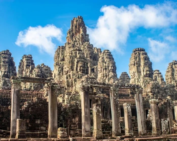 Your day will begin at the South Gate of Angkor Thom, where imposing statues of gods and demons stand guard at the entrance. From here, you’ll head to the iconic Bayon Temple, famed for its hundreds of serene, smiling faces adorning its towering spires. The intricately carved bas-reliefs are particularly impressive, portraying scenes from daily life as well as epic battles between the Khmer and the ancient Thais.