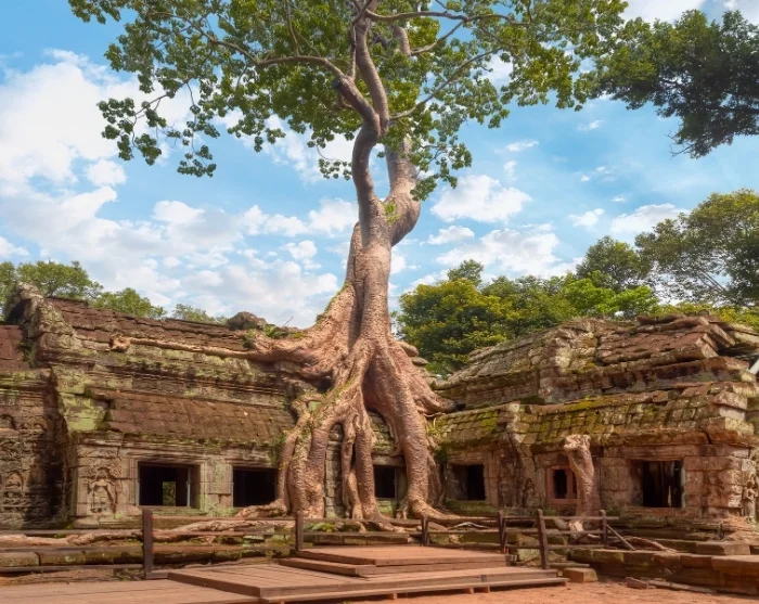Your tour concludes in Cambodia, where you’ll have the chance to explore the magnificent temple complex of Angkor. Here, the awe-inspiring and iconic temples of Angkor Wat and Ta Prohm await. You’ll stay in the charming city of Siem Reap, whose narrow streets, French villas, lively markets, and local eateries evoke a heady blend of colonial ambience and local culture.