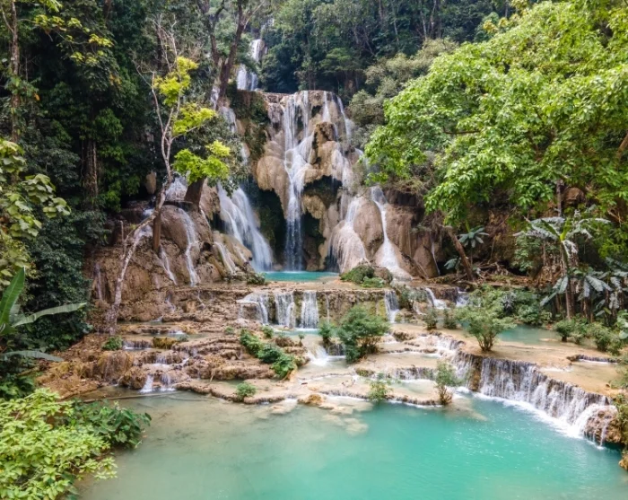 After enjoying a lovely lunch, you’ll head 30 km south to the Kuang Si Waterfall. Surrounded by lush, tropical jungle, the water tumbles down the steep hillside in a series of cascades over three levels. The highest drop reaches 60 metres, and at the lowest level you can take a dip in the tranquil, turquoise pools.