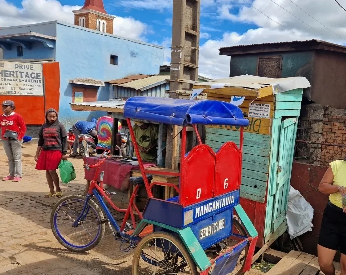 After lunch, you’ll set off on a rickshaw tour around the town, taking in some of Antsirabe’s main attractions and admiring its grand colonial-era architecture. The town was founded by Norwegian missionaries in the late 19th century, who taught the local community how to make bricks. This knowledge was later taken advantage of by the French during the colonial period, when several prominent buildings were constructed, including hotels, a post office, a cathedral, and the town’s striking railway station. You’ll also visit several local craft workshops and shops, where you’ll discover, for example, how an old washing machine motor has been ingeniously transformed into a tool for polishing spoons and jewellery made from zebu horn.