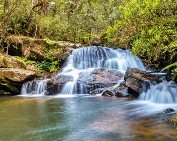 Travelling from the parched landscape in and around Isalo to the lush rainforest of Ranomafana is an unmistakable contrast. Moss carpets the trees, ferns grow taller than people, and water trickles everywhere—spilling down rock faces and onto paths that swiftly turn muddy underfoot.
