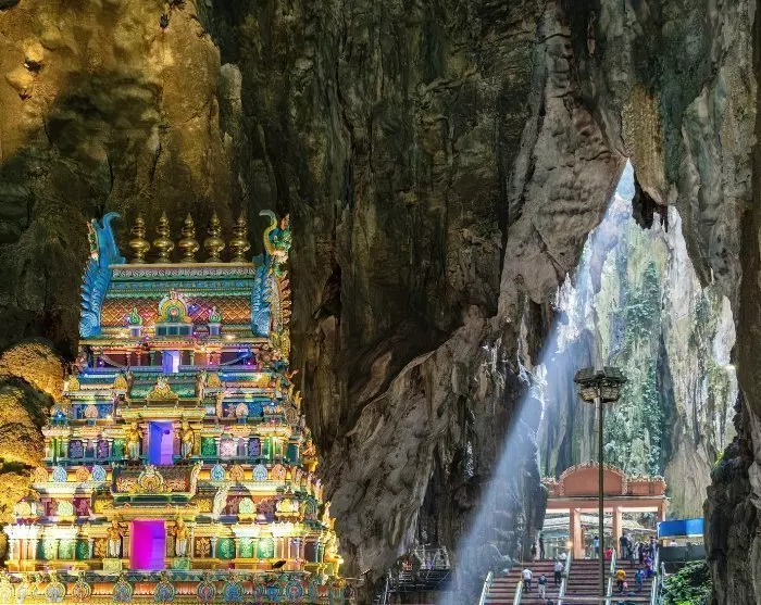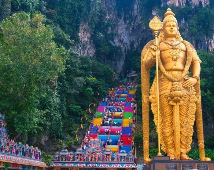 You will roceed to KL Central Station, where you’ll take a train out of the city to the Hindu sanctuary, Batu Caves. This site features numerous caves with temples, religious statues, and vibrant murals. The most striking sight is the enormous golden statue of Lord Murugan, guarding the vibrant, rainbow-coloured staircase of 272 steps leading to the caves, offering a breathtaking view over Kuala Lumpur.