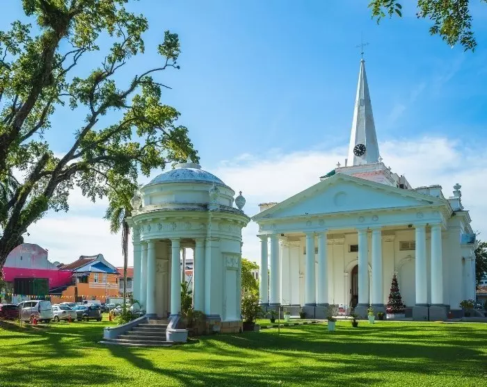 The next stop is Jalan Masjid Kapitan Keling, also known as the ‘Street of Harmony.’ Here, different religions coexist peacefully and with mutual respect, a testament to George Town’s multi-ethnic community. You can see St. George’s Church, Malaysia’s oldest Anglican church, the Chinese Kuan Yin Teng Temple, the Hindu Sri Mahamariamman Temple, and the Kapitan Keling Mosque.