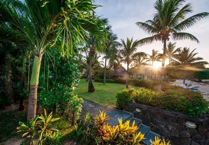 The beach itself is at the bottom of the large, lush garden where you will find the rooms.
